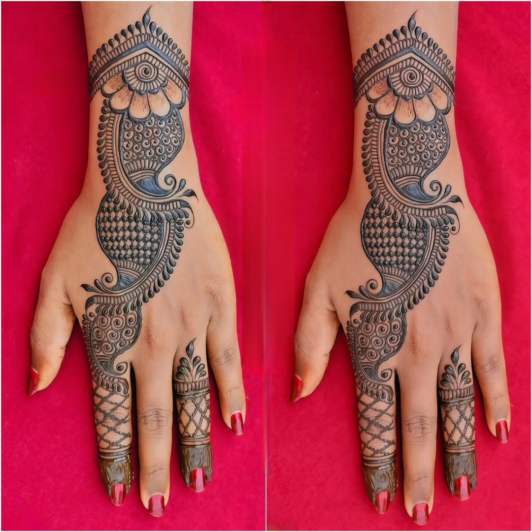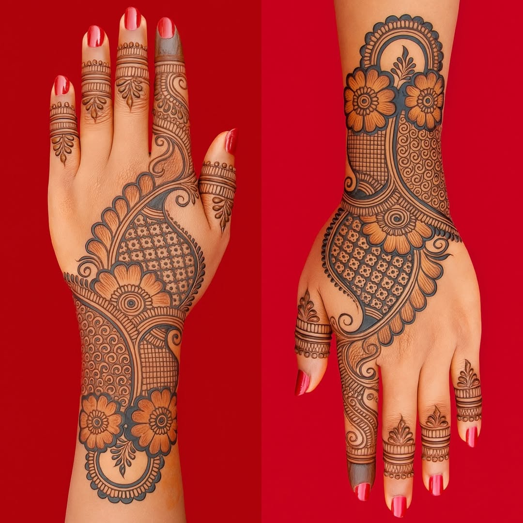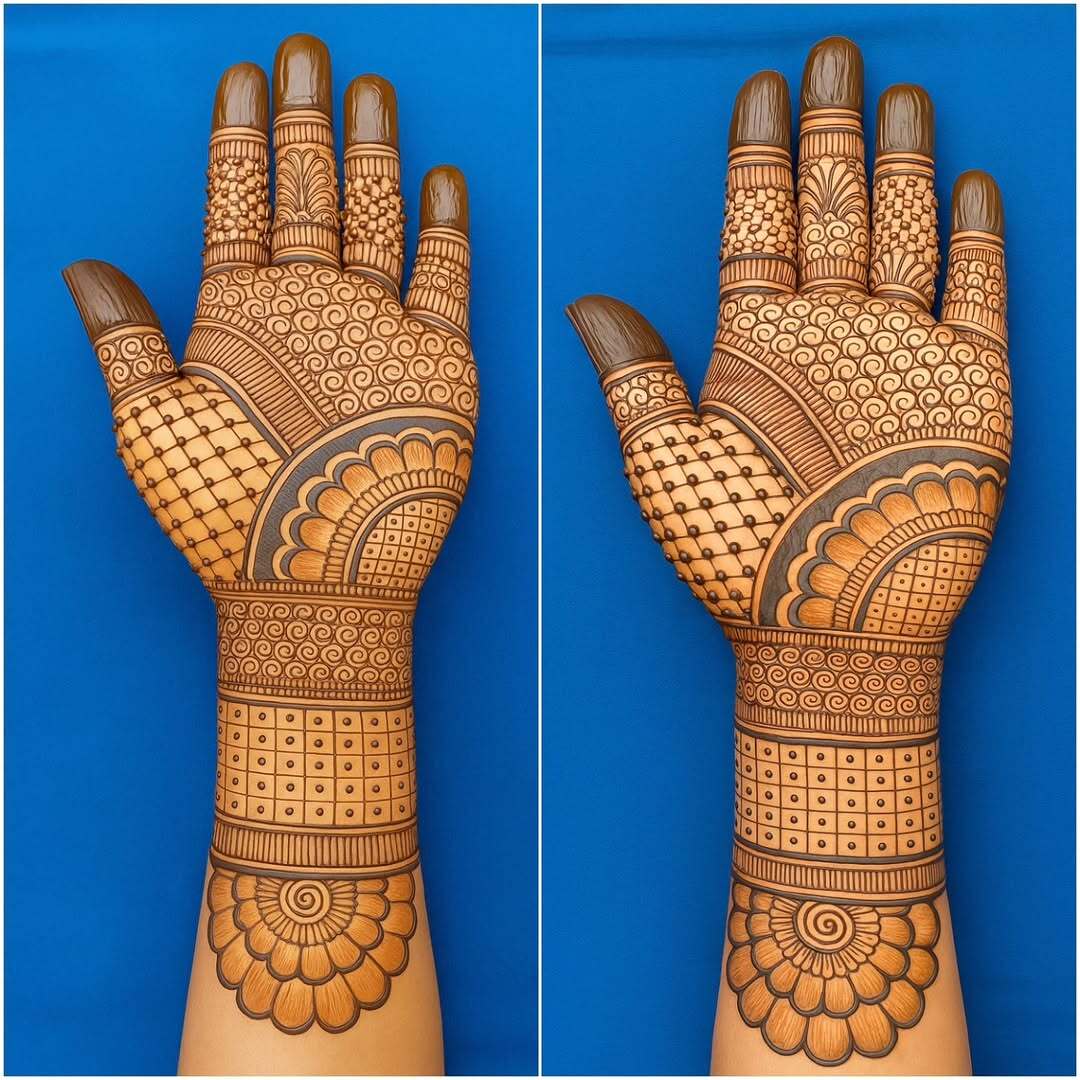 Mehndi Designs For Karwa Chauth हर विवाहित महिला और दुल्हन के लिए इस खास त्योहार को और भी सुंदर बनाते हैं। ये डिज़ाइन सिर्फ हाथों की खूबसूरती बढ़ाने के लिए नहीं, बल्कि प्यार और समर्पण का प्रतीक भी हैं। चाहे आप सिंपल पैटर्न पसंद करें या इंट्रिकेट और हेवी डिज़ाइन, हर Mehndi Design आपके Karwa Chauth लुक को खास और यादगार बनाता है। फूलों, पारंपरिक मोटिफ्स और शृंगार के बेहतरीन मेल से ये डिज़ाइन हर हाथों पर आकर्षक दिखाई देते हैं।